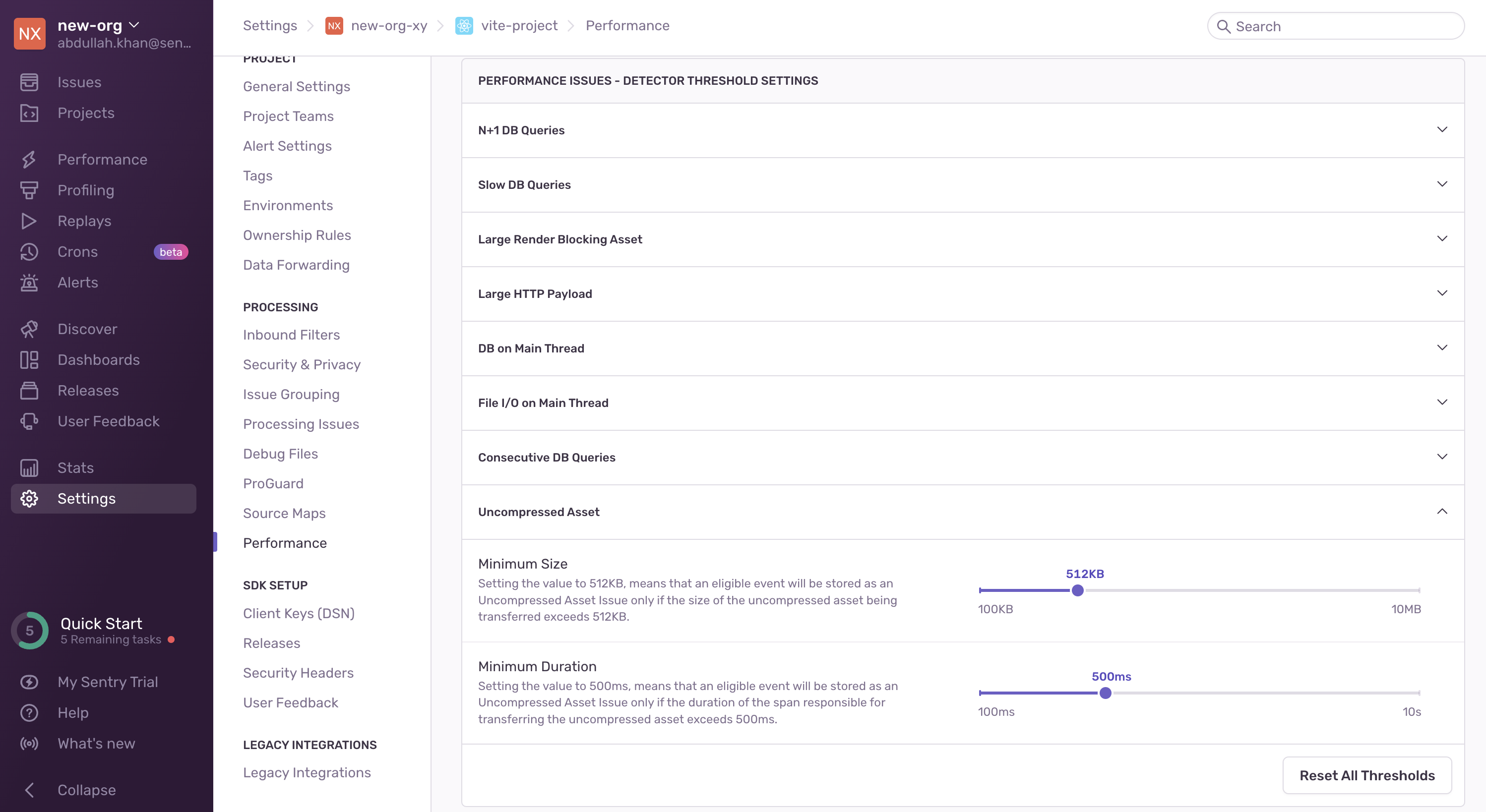 View it by going to the Issues page in Sentry, selecting your project, clicking on the Uncompressed Asset error you want to examine, then scrolling down to the "Span Evidence" section in the "Details" tab.